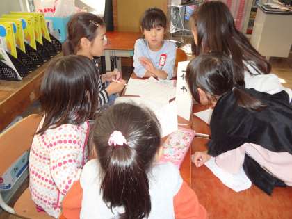 生活科で11月25日に町探検に行きます。その計画を立てているところです。どんな質問をすればいいのか考えました。先週個人で考えた質問をグループで読みあって,話し合いました。3クラス合同のグループでの活動も慣れてきて,活発に意見が出ていました。みんな意欲的です。