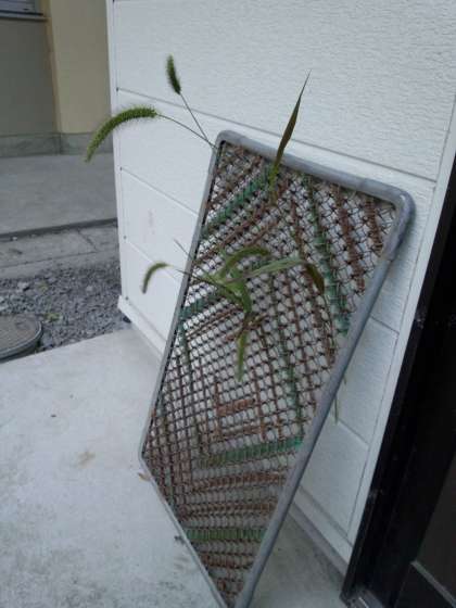 手にしたエノコログサをどうするのかなと思って見ていると,児童館分室の建物の前に立てかけてあった足ふきマットに差し込んでから校舎内へ入って行きました。