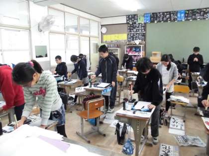 をしました。いつもとは違う画仙紙に書きました。真剣に集中して書き