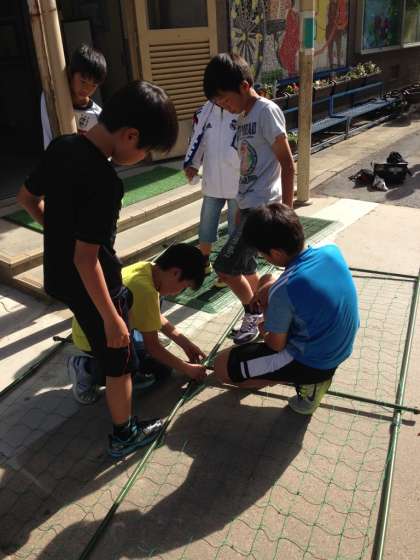 また,ネットの設置も行いました。水やり当番も火曜日から始めました。