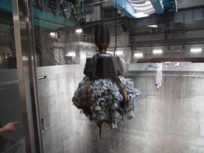 観光バスに乗り,まずは北部クリーンセンターに行きました。近づくにつれて見えてきた建物は,本当に立派で驚きました。見学用にいろいろと工夫されていて,小学生が興味深く学習できるように3Dなどの映像も使われていました。音やにおいがしない工夫がされ,清潔な施設に驚きました。