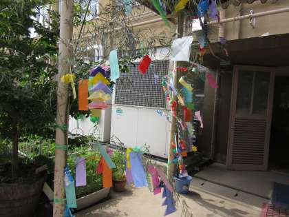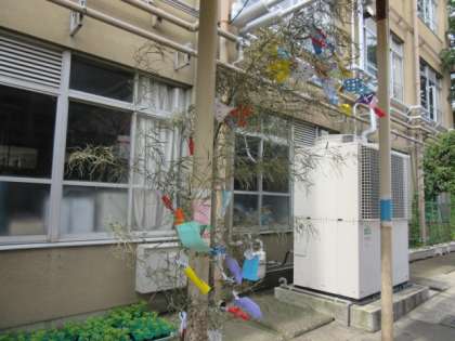 子どもたちが作った短冊や,たなばた飾りをつけました。本館の入口にあります。図工で取り組んだ「切り紙」も飾りました。素敵な笹飾りができあがりました。一人ひとりの願いが込められています。機会がありましたらぜひご覧ください。