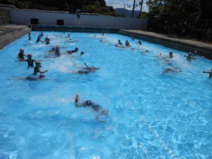 晴天の下,プールでの学習をしました。