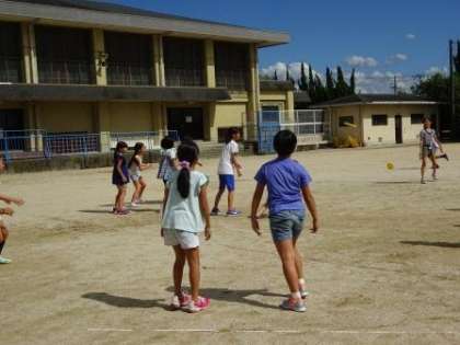 その後は,フリスビードッジをしました。クラス対抗で5年生全員で楽しみました。