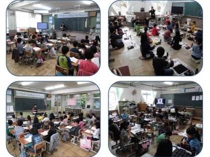 11月10日(火)北校舎2階と西校舎の教室の授業の様子を見に行きました。2年生は国語の授業で「しかけカードの作り方」と「わたしはおねえさん」の教材を使って学習していました。3年生は,書写で「正月」の字を毛筆で書いていました。