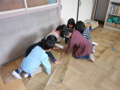 子ども達はお店を開くために何を作ればよいか計画し,グループごとに準備を進めています。