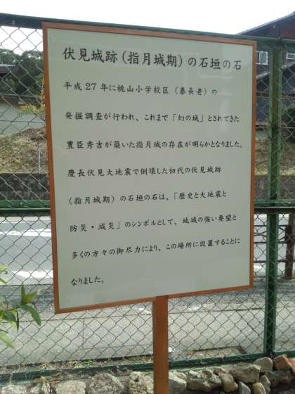 初代伏見城(指月城)石垣の石の説明板 設置