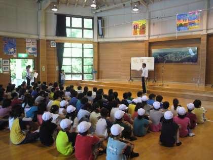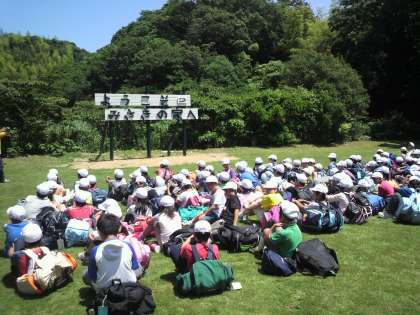 約35分の船旅を終えて,船は「みさきの家」の「なかよし港」に到着しました。船酔いする人も無く,みんな元気に入所式に参加して,所員の方の話をしっかり聞いていました。いよいよこれから本格的な「みさきの家」での活動が始まります。まずは14:30から浦山散策が始まります。