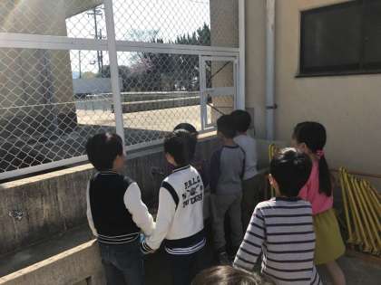 生活科の学習で,学校にどんなものがあるのか見つけに行きました。