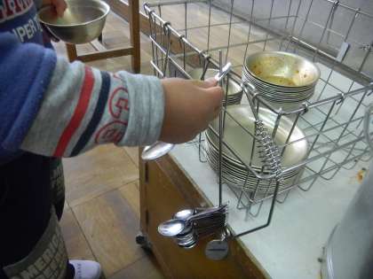 お話をしっかり聴いていたので食器の片づけもばっちりです。スプーン向きもちゃんとそろえて返すことができていました。