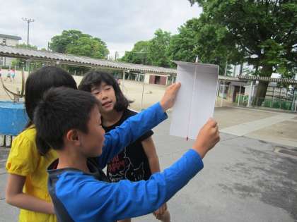 理科の学習「天気と気温」では,天気によって気温がどのように変化するのかを調べています。今日は外に出て,温度計を使い気温を計りました。先週から,百葉箱に自記温度計を入れて一週間の気温の記録をとっています。来週に記録を見るのが楽しみです。