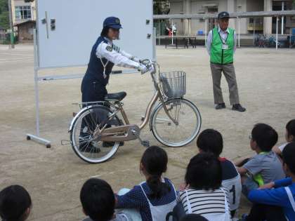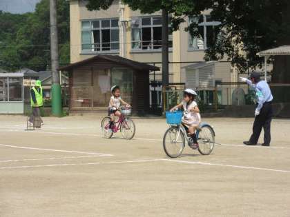 今日は,伏見警察署の方と地域ボランティアの方にお手伝いをしていただき,自転車教室を行いました。丁寧に自転車の乗り方や自転車で走る方法を教えていただきました。