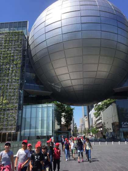 名古屋市科学館に着来ました。館内での行動について説明を聞いています。館内に入れば,まずプラネタリウムを全員で見学します。