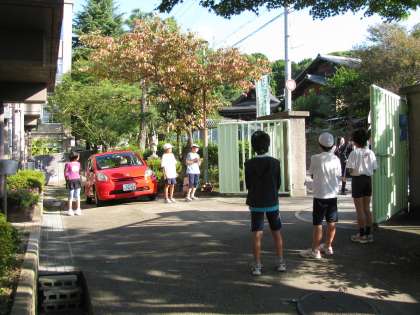 毎月第2週は,子どもたちも門に立ち,登校してくる友達を迎えます。