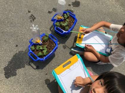 あさがおの成長の様子を,じっと見たり,触ってみたり,においを嗅いだりしてじっくり観察することができました。