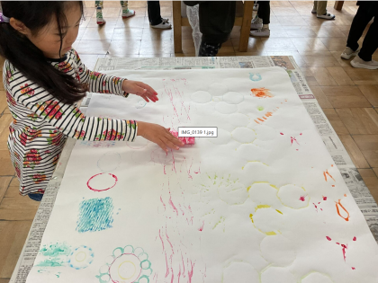 色々な模様を描いて「海の中みたい!」「お花みたい!」と想像している姿が見られました。