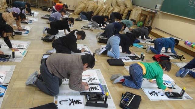 書写では「書き初め」をしました。画仙紙に書くのは初めての子も多かったので、少し緊張した様子で丁寧に文字を書き表していました。