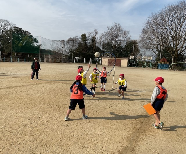 今日は、パスゲームの最後の試合をしました。今までの学習でボールを投げたり、受けたりする動きが上手になった子もたくさんいました。また、チームでの作戦会議をすることで、動きがよくなったチームもありました。「ボールを受けるのが苦手な友達はどうしたらボールが取りやすいかな?」とチームのみんなが楽しめるように考えてくれた人がいたことも嬉しかったです。次は『ボールけりゲーム②』の学習が始まります。パスゲームでできるようになったことも生かして学習を進めていってほしいと思います。