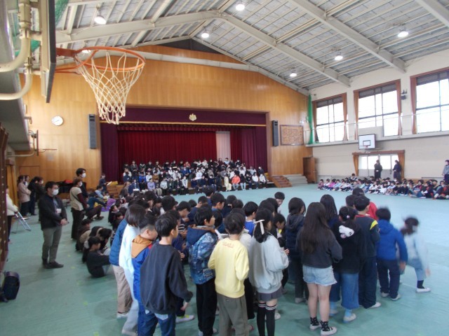 本日、全校で「6年生を送る会」を行いました。