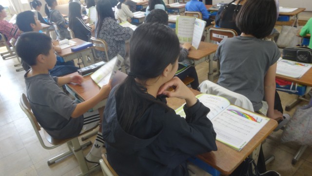 すごくきれいな二部合唱を教室に響かせてくれ、新しい環境での学習生活にわくわくする時間が流れていました。