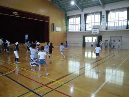 午前10時から体育館でドッジボール大会が行われました。みんな汗をかいてボールをおいかけています。