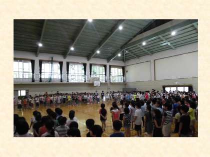 今日の1時間目は「児童朝会」でした。今年から,児童朝会の始まりに「みんなで歌おう」と題して,全校で歌う取組を始めています。今回は「ありがとうの花」という曲でした。「ありがとうって いったら みんなが わらってる。ありがとうの花がさくよ。」という心が温かくなる歌詞です。みんなで歌うことは,声だけでなく心も一緒に合わせているのだなあと思いながら聞いていました。