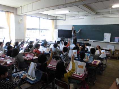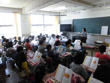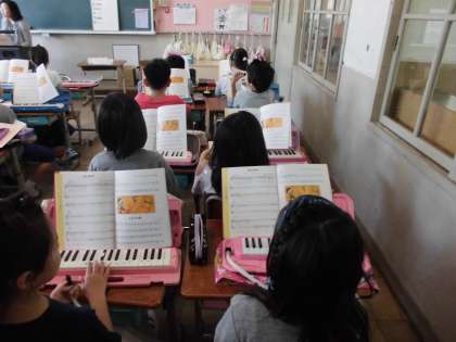 音楽の時間に,けんばんハーモニカの練習や歌の練習をしていました。とても上手にけんばんハーモニカを吹いていました。