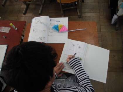算数の時間に「180°をこえる角度の大きさ」を学習しています。今日は,大きな角度の求め方について学習していました。