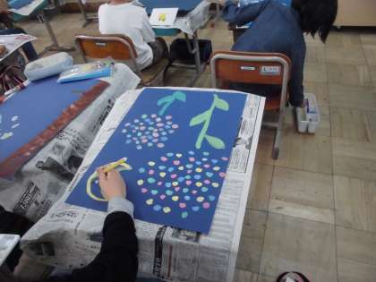 図画工作の学習で,”まぼろしの花”を描いています。
