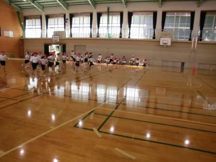 体育の時間に「シャトルラン」をしていました。みんな一生懸命に自己ベストをめざして頑張っていました。