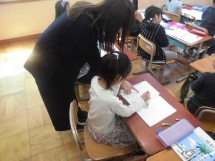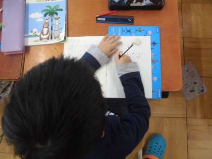 算数の時間に「足し算」の学習をしていました。今日は,足し算の練習問題と足し算を使って解く文章問題を学習していました。