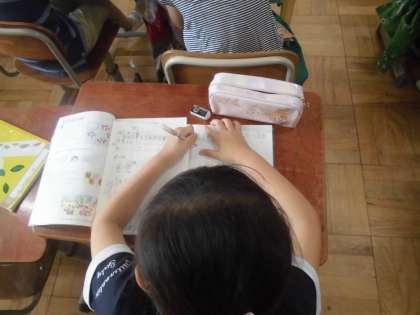 算数の時間に「わり算」を学習しています。今日は,わり算を使う練習問題をしていました。みんな集中して練習問題を解いていました。