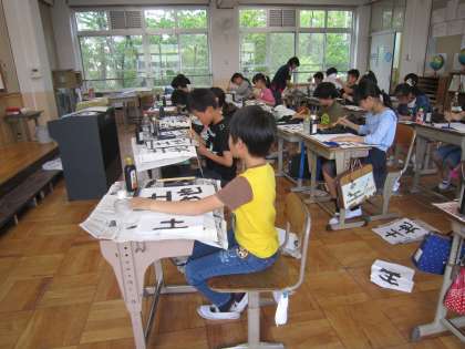 5年生の書写の学習では,へんとつくりに気をつけて「土地」という字を書きました。背筋を伸ばし,一画ずつ丁寧に書く姿は,とても素敵でした。