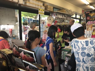 第1回目のお土産タイムです。姫路城近くのお土産店で,お土産を一生懸命選んでいます。。