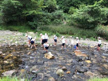 親水広場で,生き物探しています。どんな生き物を発見できるのか楽しみです。
