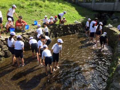 水温14度。冷たい水にもめげず、魚つかみをしました。
