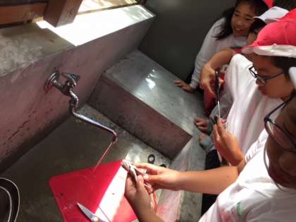 子どもたちは命に感謝しながら、丁寧にさばいています。