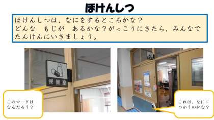 生活科の学習で,「がっこうたんけん」,書写の学習で「がっこうのもじたんけん」を