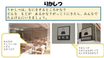 生活科の学習で,「がっこうたんけん」,書写の学習で「がっこうのもじたんけん」を します。