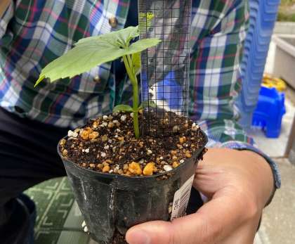 4月末に植えたツルレイシがぐんぐん育っています。