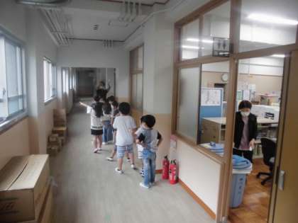 1年生の子どもたちが,学校たんけんをしています。