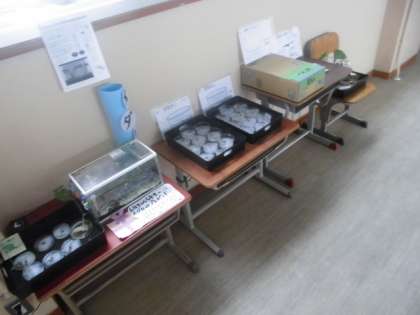 メダカやインゲン豆の実験の様子。