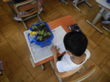 今日は,アサガオを観察しました。