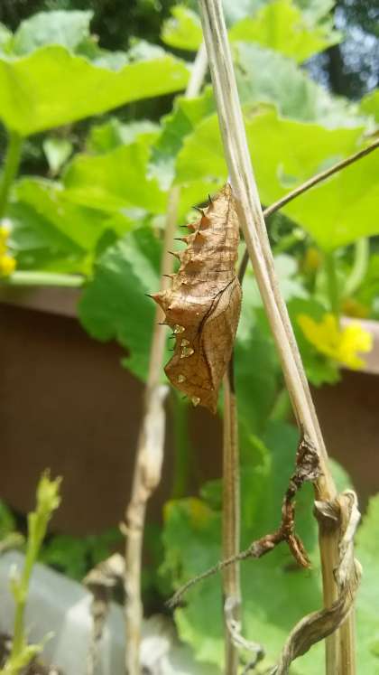 このむしは,まいにちたくさんパンジーのはっぱをたべて,そのあとにちゃいろいからだにへんしんして,うごかなくなりました。