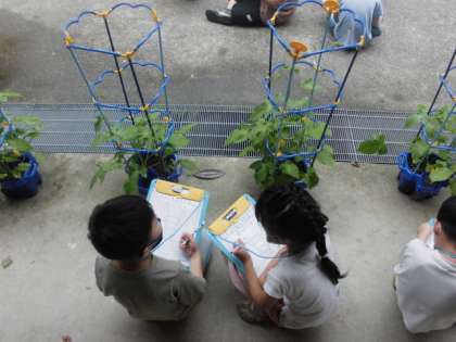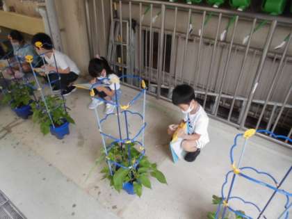 子どもたちは,今日,観察カードに,あさがおを書きました。