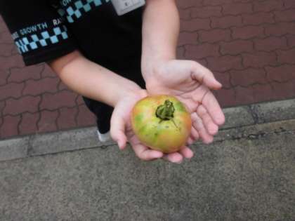 大きなトマトを見せてくれました。