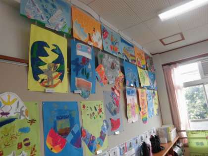 図画工作の作品が飾られています。