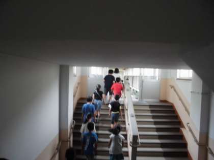 東校舎に避難する練習もしました。