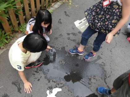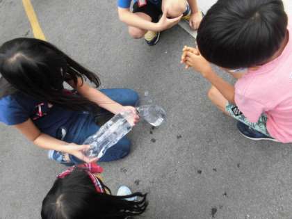 いろいろな入れ物を使って,1Lあて大会をしました。
