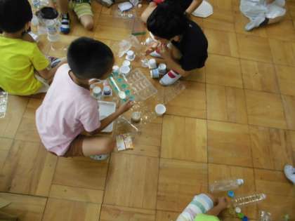 子どもたちはその集まった身近なものをもとに,